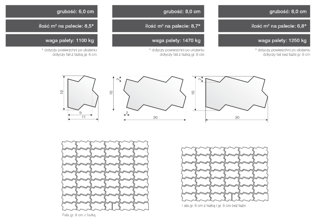 Sukrauti kubeliai, susipynę vienas su kitu, sukuria paviršius, kurie visiškai atsparūs slinkimui ir paviršiaus tęstinumo trikdymui. Dėl universalios šio grindinio akmens formos jis puikiai tinka bet kokiai aplinkai. Jo banguoti kraštai suteikia kompozicijai specifinio charakterio, o briaunos elementai suteikia estetišką apdailą. Parduodama kubo versija su nuožulna ir be jos.